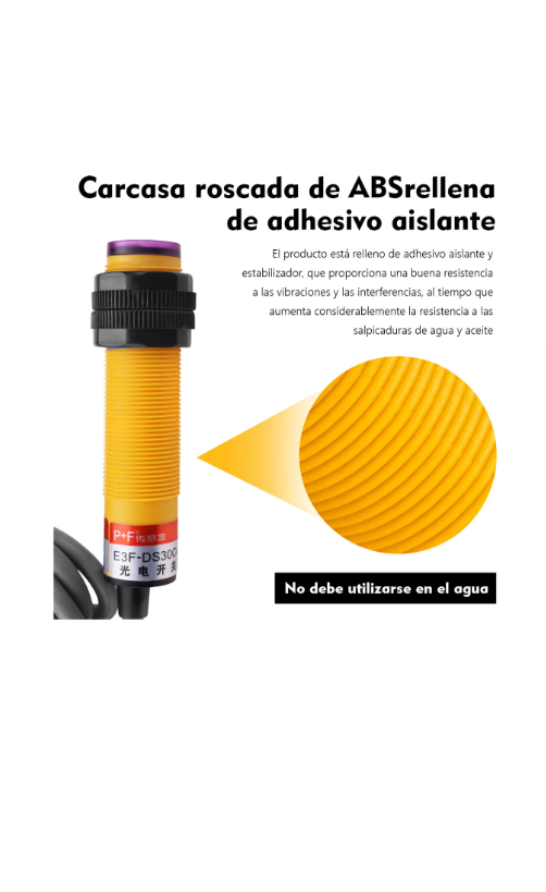 Ademas maneja un voltaje de operación de 6 – 36 VDC con salida NPN de colector abierto. Cuenta con una protección IP64 por lo que puede trabajar bien en ambientes con polvo o humedad , lo que hace que sea ocupado continuamente en el ramo industrial.